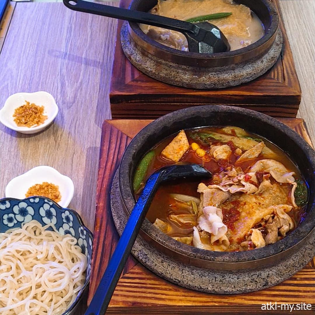 石焼火鍋は一人用のセットになっていて、スープを4種類から、お肉を数種類から、炭水化物を3種類から選べます。