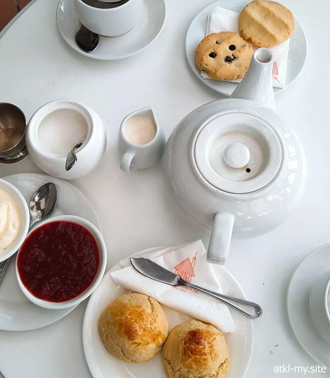 フルーツケーキが絶品だと聞いたことがあるのでぜひ試してみたかったものの、ランチを食べたばかりでお腹がいっぱいだったため、①はあきらめ②Devonshire Cream Tea(スコーンセット)と③Homemade Cookie Set(クッキーセット)をオーダーすることに。